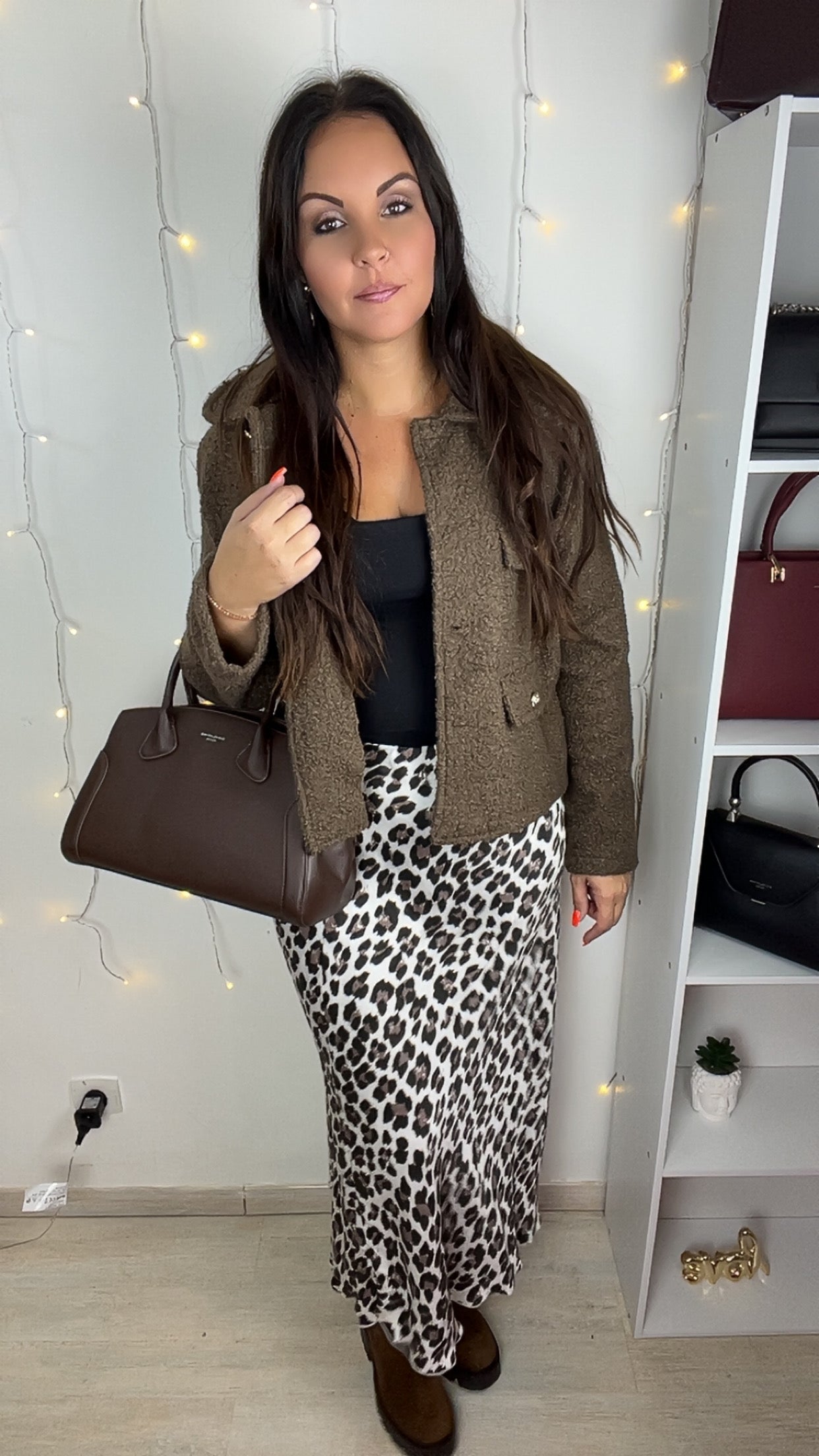 Laisse parler ton cĂŽtĂ© audacieux avec la jupe longue âSelvaggiaâ, une piĂšce qui allie confort et Ă©lĂ©gance avec une touche sauvage. Son imprimĂ© lĂ©opard intemporel en fait un indispensable de la garde-robe, aussi bien pour un look casual chic que pour une tenue de soirĂ©e glamour.