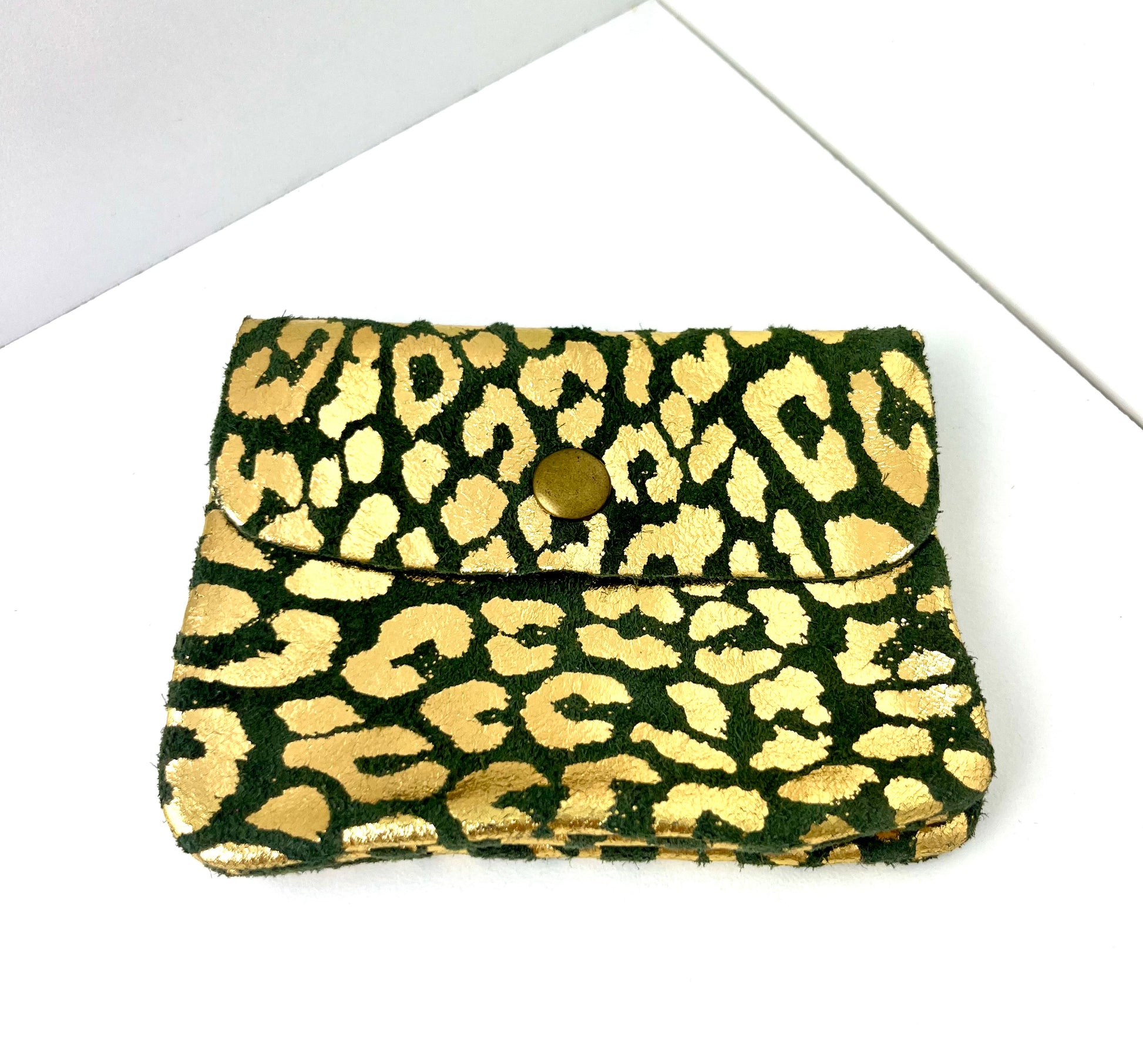 Découvrez nos élégants porte-monnaie confectionnés en croûte de cuir de vachette 100 % italien, alliant qualité artisanale et design raffiné. Leur finition irisée effet léopard doré apporte une touche chic et intemporelle, parfaite pour accompagner toutes vos tenues.