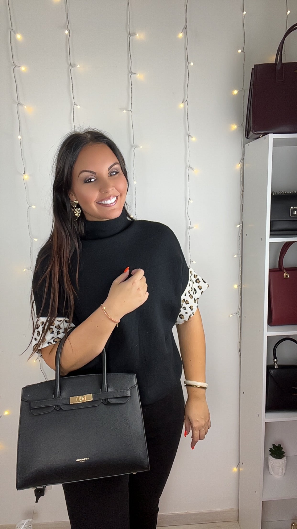 - Couleur : Noir uni avec revers léopard (fond blanc)